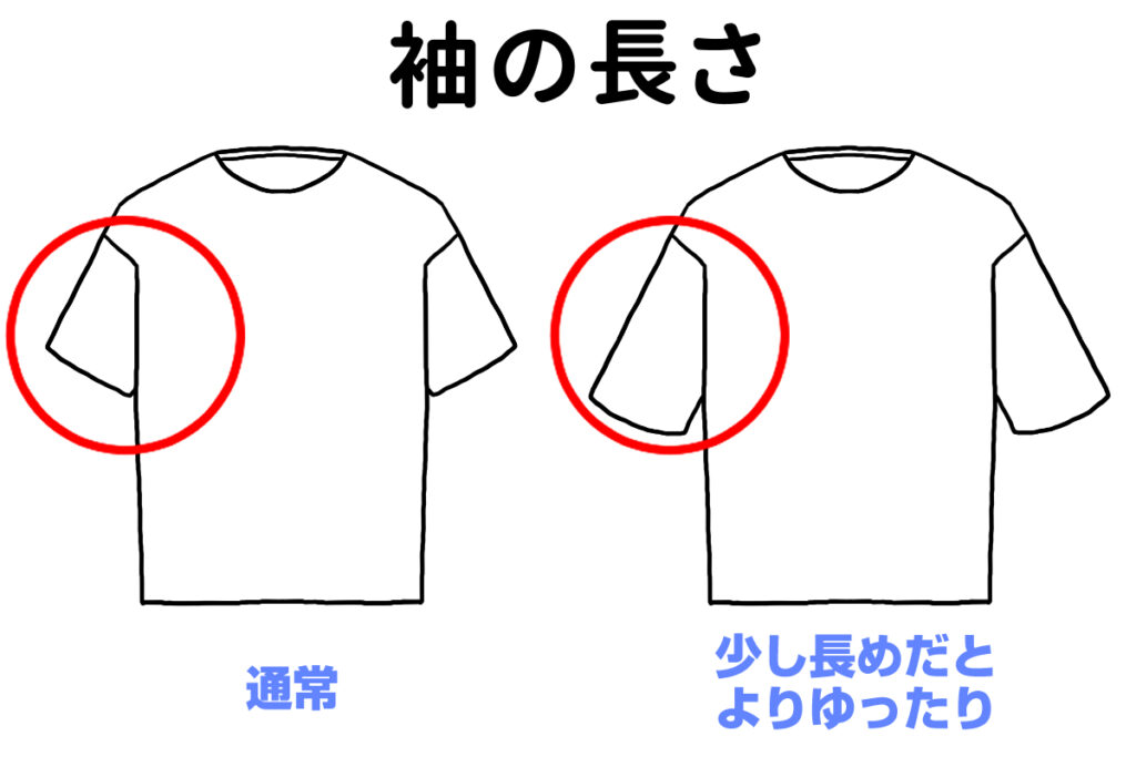 丈が長いのが嫌な人は、「袖の始まり位置が肩より下」「袖丈が通常より長め」を選ぶとゆったりとした着こなしを実現できるでしょう。